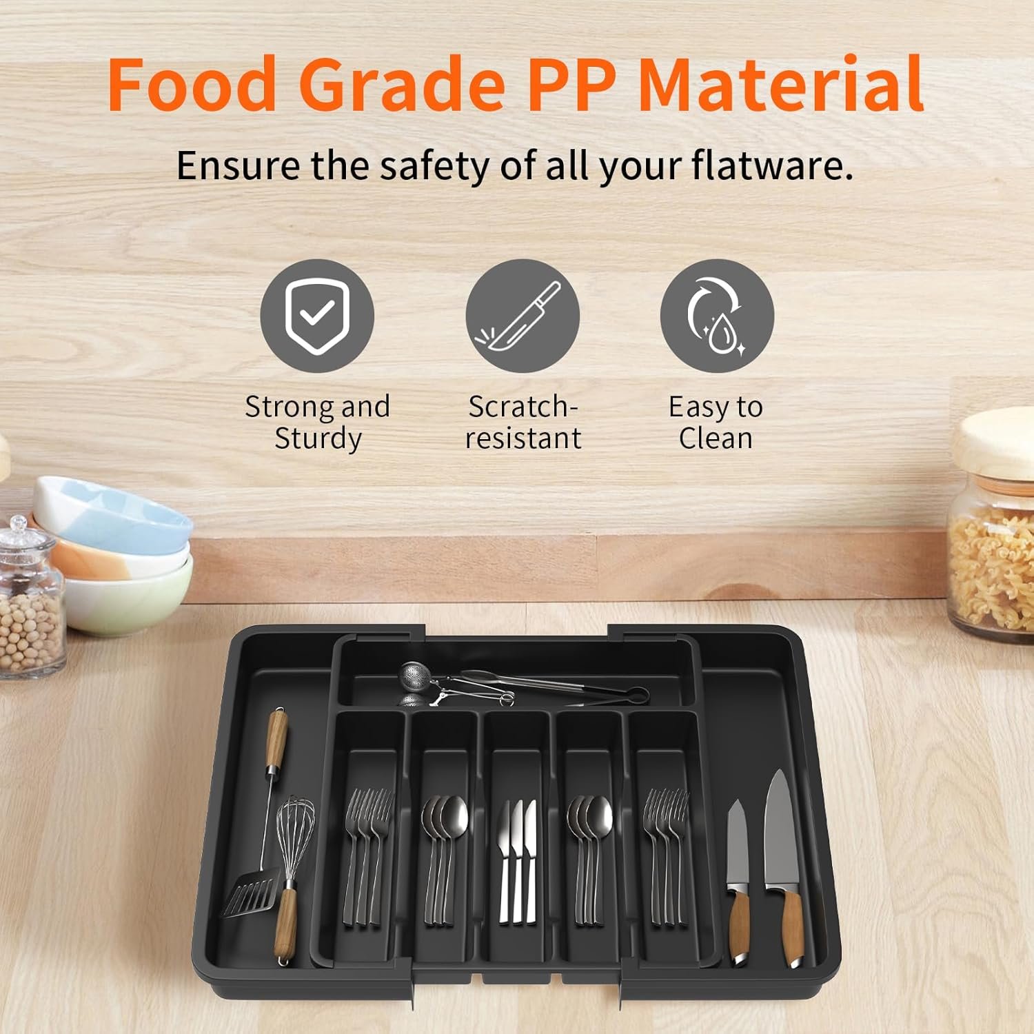 Safely store your utensils with our BPA-free utensil organizer.