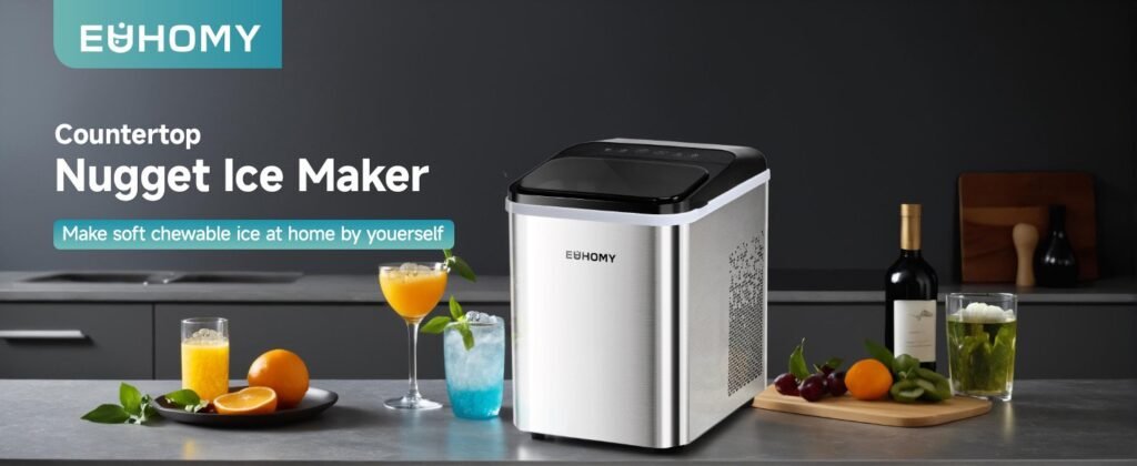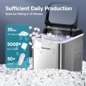 Gone are the days of waiting hours for freezer trays. The EUHOMY Countertop Ice Maker delivers 9 fresh bullet-shaped ice cubes in just 6-8 minutes . With a powerful compressor and a 1.2L water tank, it produces up to 26lbs (or 12kg) of ice per day .